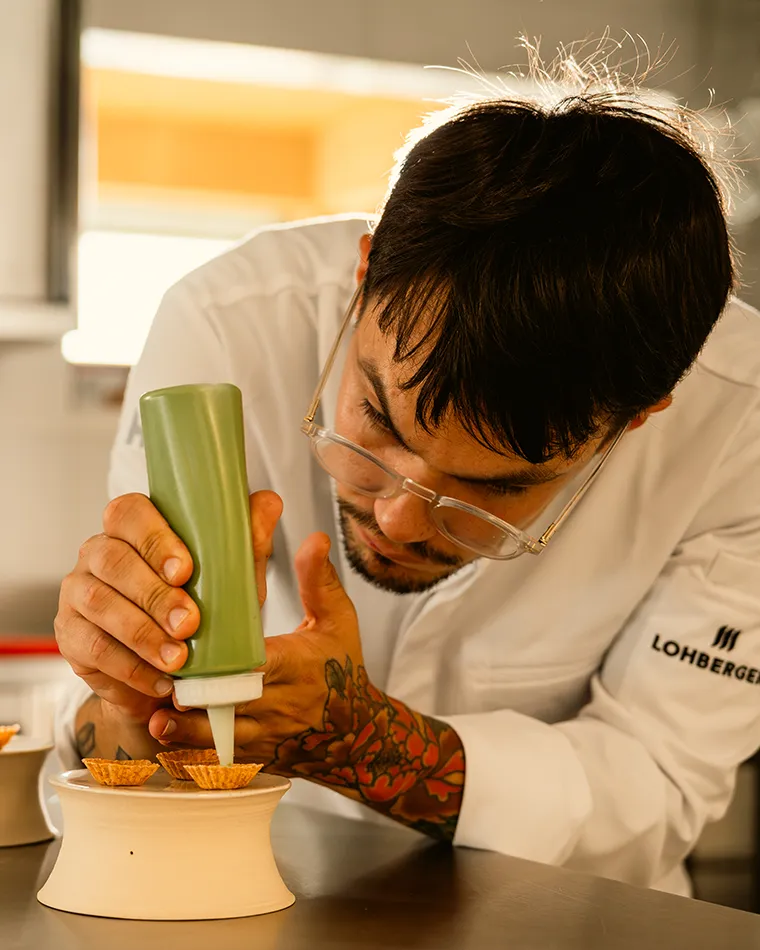 Jurij je kuhar nove generacije, brez odvečnega pompa, a z izjemnim občutkom za okus. Njegove korenine segajo tudi čez mejo, v Italijo, kjer družinska tradicija in kulinarična dediščina še danes vplivata na njegov pogled na kuhinjo. Navdih pogosto najde tudi v prefinjeni preprostosti sodobne francoske kulinarike, ki jo spretno prepleta z lokalnimi sestavinami in sezonskimi poudarki. Njegov slog je jasen in iskren,. Jed mora biti razumljiva, a hkrati dovolj navdihujoča, da pusti vtis. Brez nepotrebnih okraskov, z osredotočenostjo na bistvo okusa.Njegova filozofija vrača kulinariko k njenim koreninam: v spoštljiv dialog z vinom, naravo in ljudmi